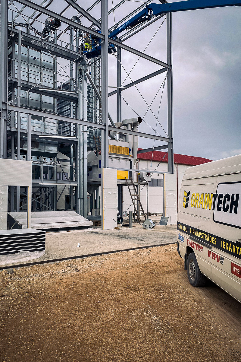 Ar šo bioloģisko saimniecību mums ir veiksmīga sadarbība jau no 2014.gada, kur uzstādījām pie jaunuzcelta angāra pieņemšanu ar diviem 30 m3 kvadrāta tipa torņiem, tīrītāju 15 t/h un 35 m3 MEPU kalti.